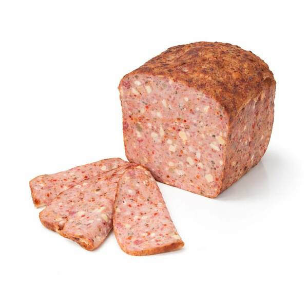 Bayerischer Leberkäse mit Schinken, Salami, Käse, Champignons und Paprika Stückchen.