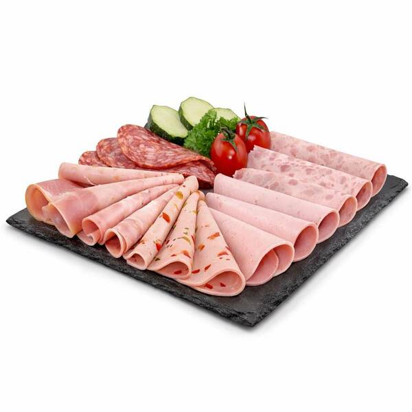 Unser fünffach sortierter Aufschnitt, zusätzlich mit Schinken und Salami.