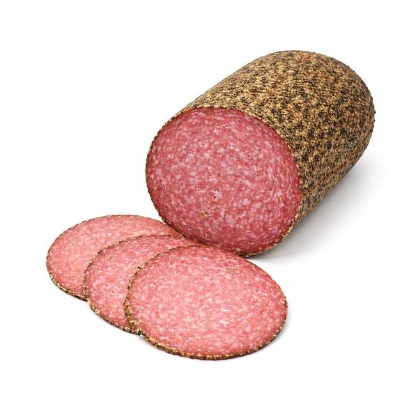 Unsere Hauseigene Rezeptur mit gebrochenem Pfeffer und erlesenen Gewürzen verleihen dieser Salami ein besonderes Aroma.